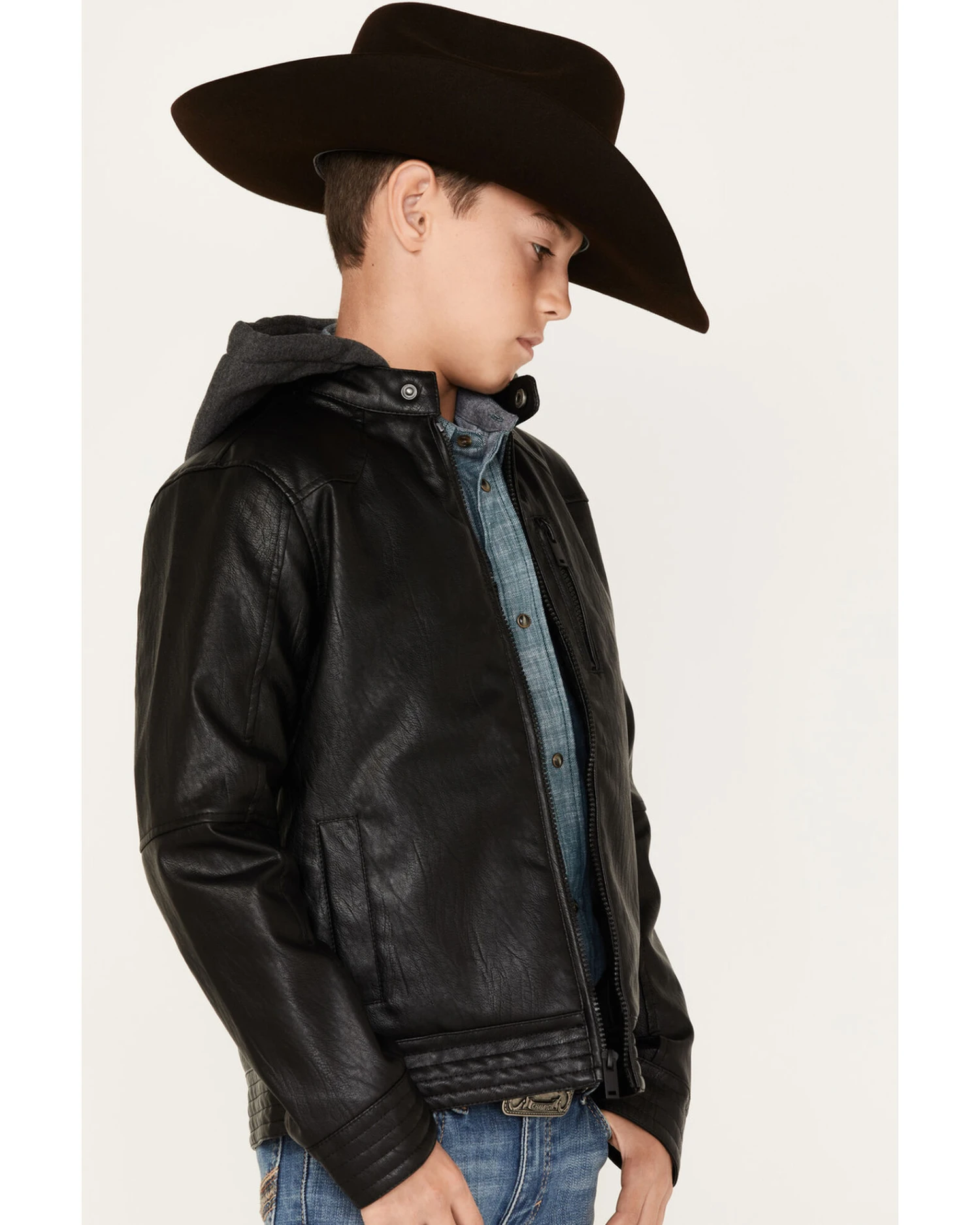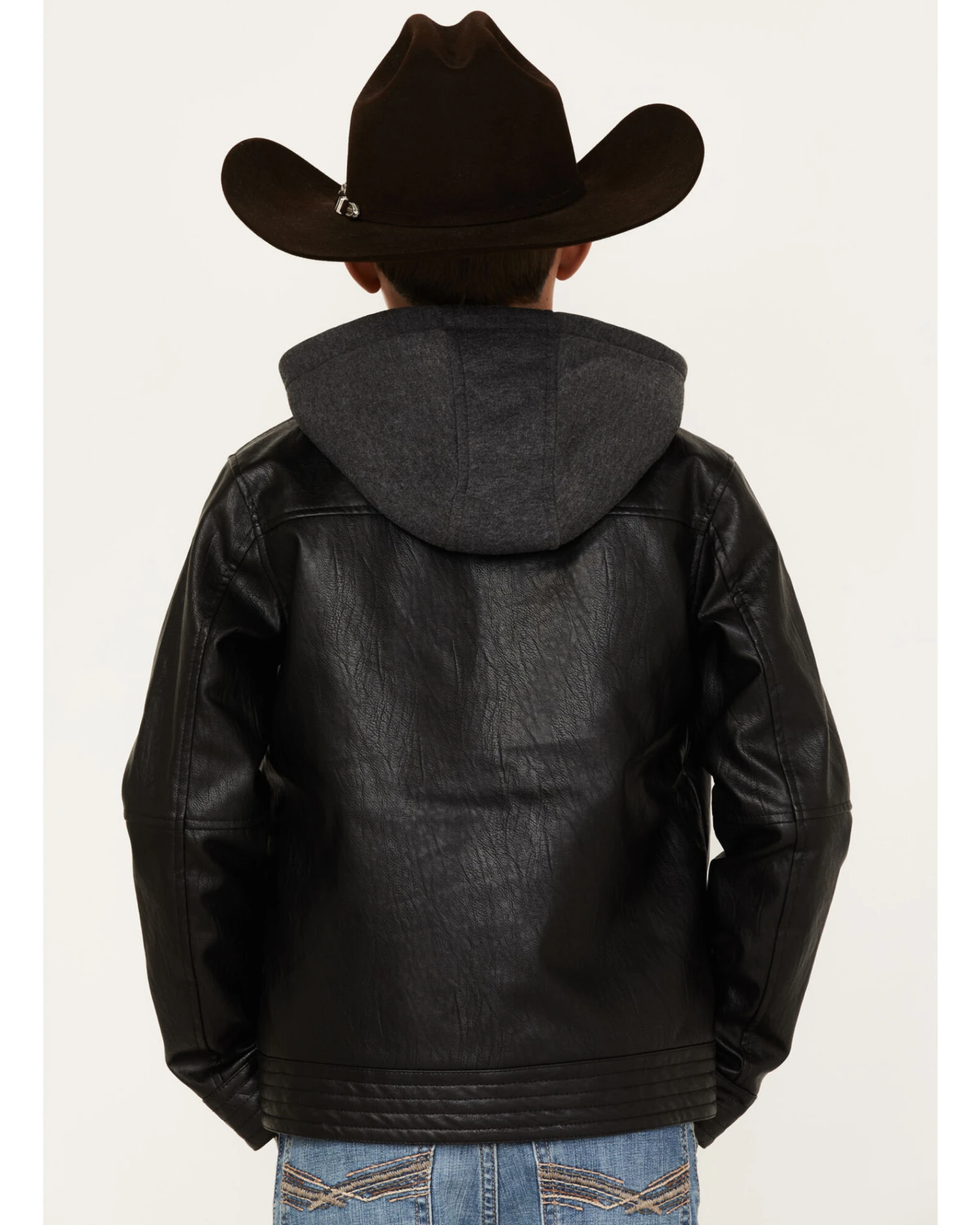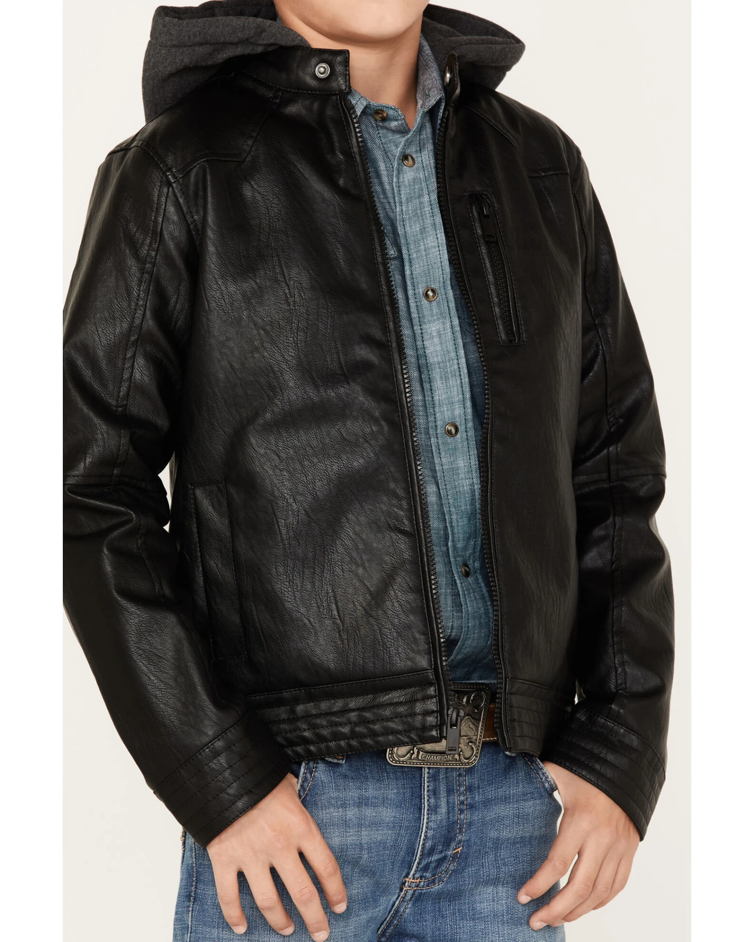 Cody James Boys’ Hooded Faux Leather Moto Jacket